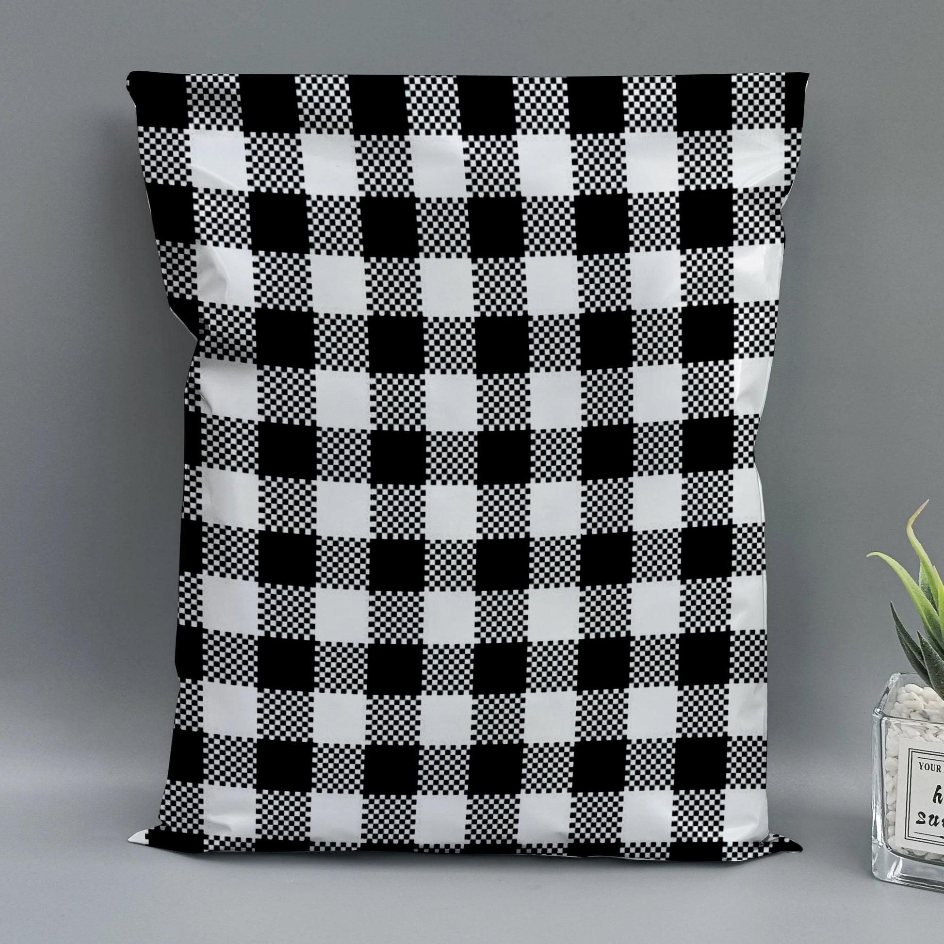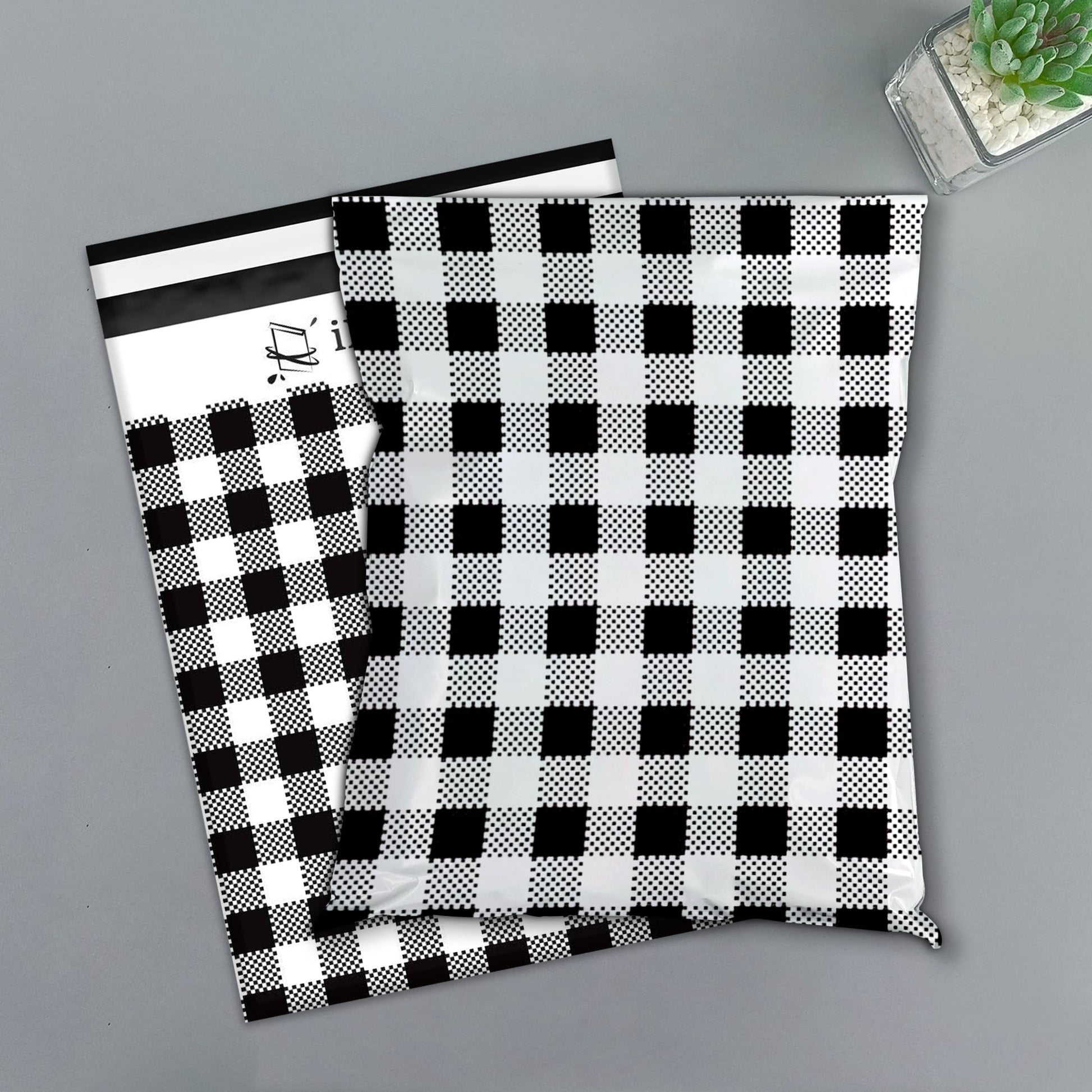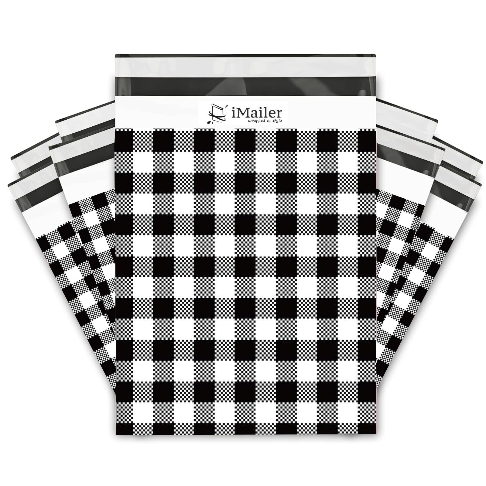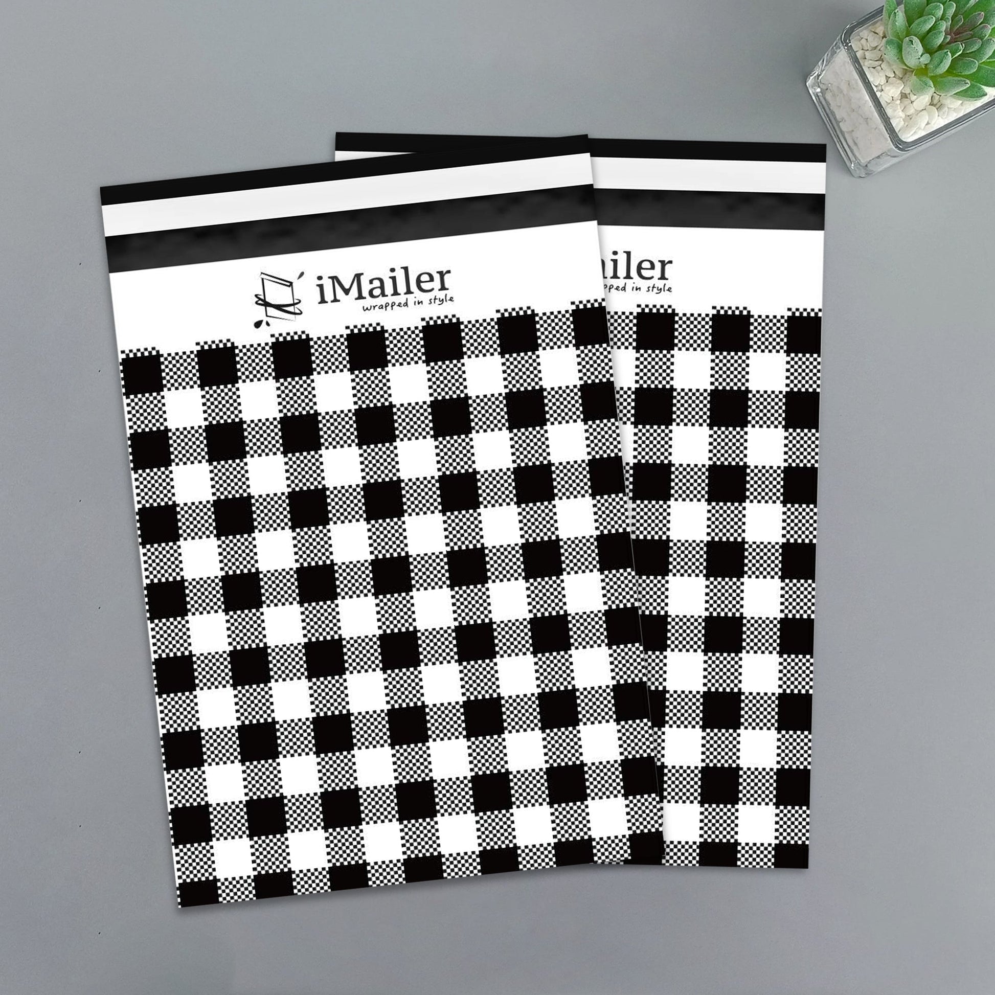 Imailer Mailing Shipping Bags with Self Seal Strip Poly Mailers Black Gingham Plaid Shipping Bags