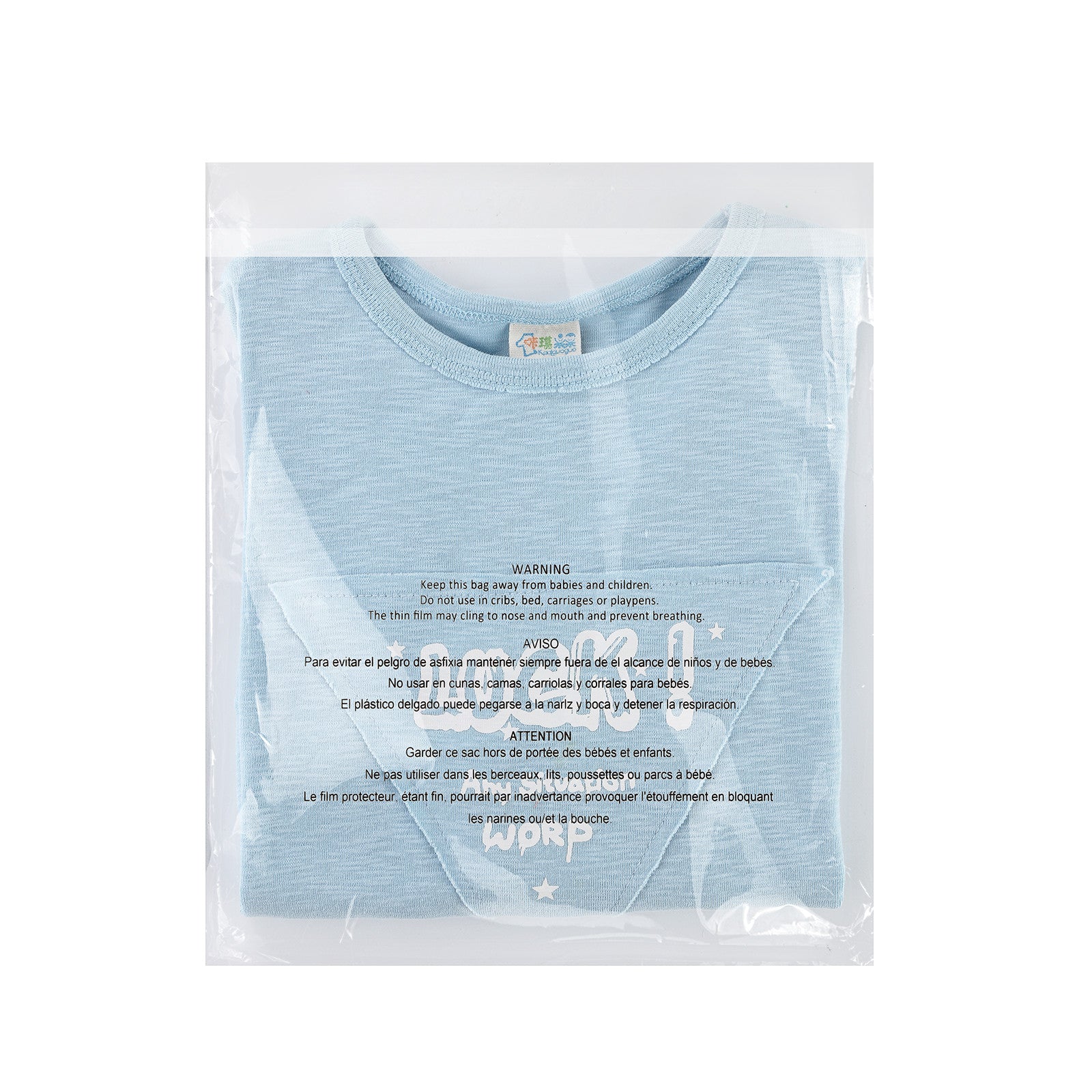 Plastic bags must carry a warning label stating that the bag can pose a suffocation risk to children. Common phrasing includes: