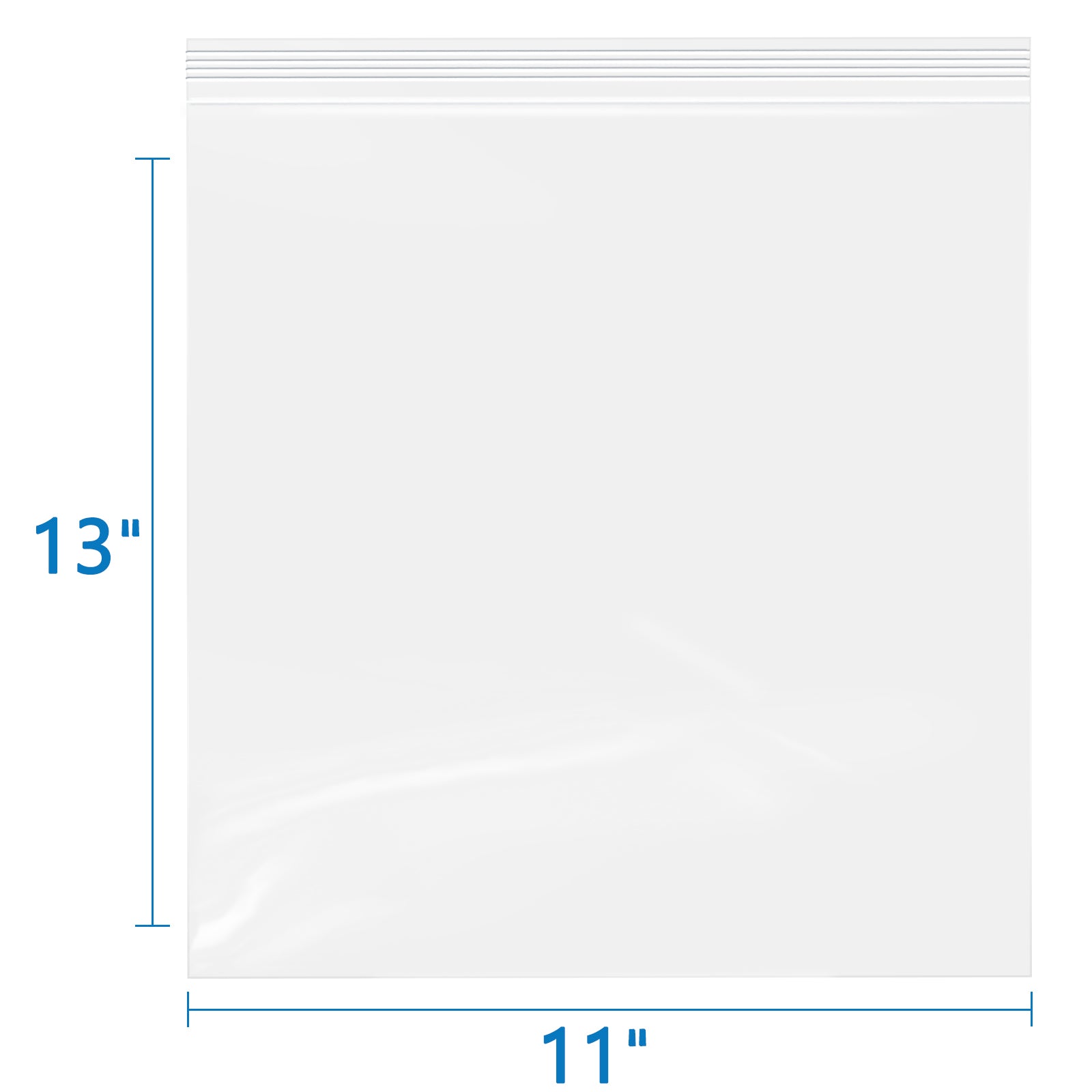 2 Mil 11" x 13" Resealable Clear Poly Zip Bags 100 Pack