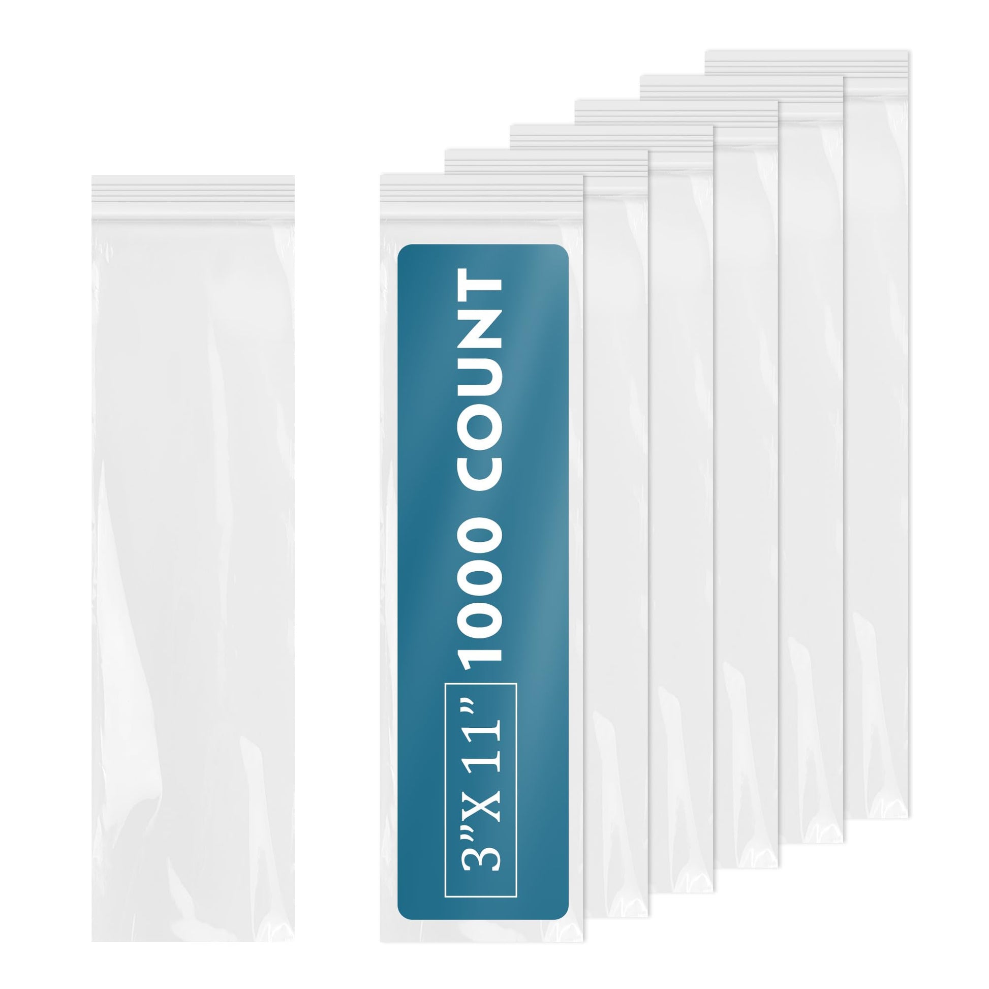 2.0 Mil, 3" x 11" Reclosable Poly Bags-Zip Lock Bags 1000 pack